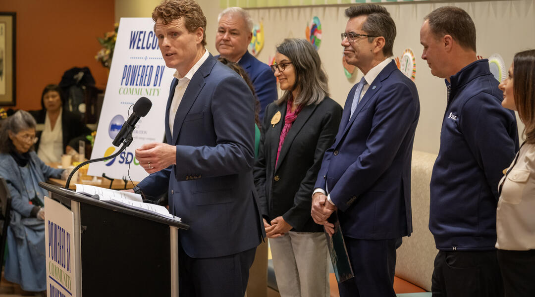 Former Congressman and President of Citizens Energy, Joe Kennedy III, visits Serving Seniors to announce donations of EVs funded through SDG&E transmission project